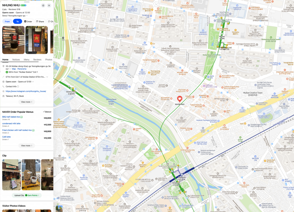 The original name “NHUNG NHU” is likely pronounced “Yoonne.” Since many Koreans had difficulty reading the Vietnamese spelling, the owner later added a Korean outdoor sign. If the Korean pronunciation were written directly in English, it would likely be spelled “Yoon nue.”